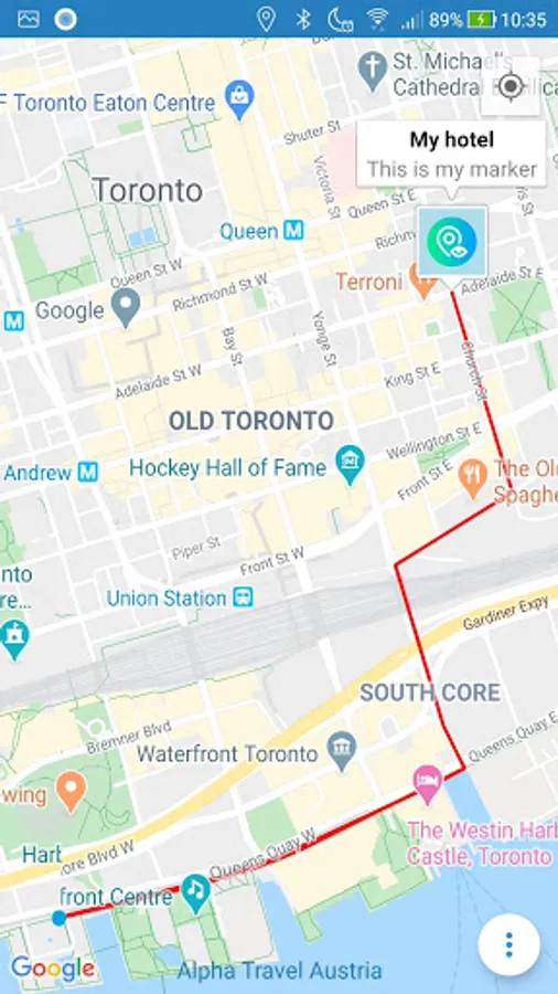 7. Add markers on the map, i.e. Hotel, Parking Lot, ..., and later, you can get directions back to your Hotel/Parking Lot