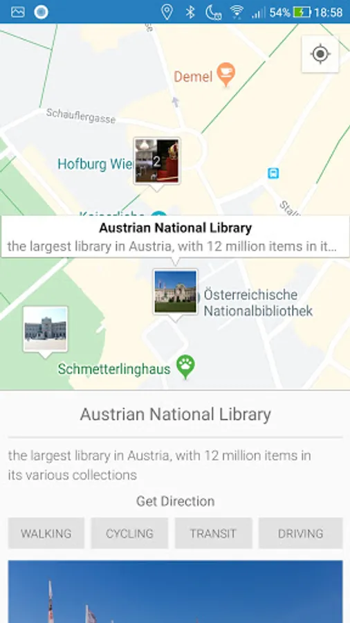 5. Get directions to the attraction, by four modes: Walking, Cycling, Transit, Driving