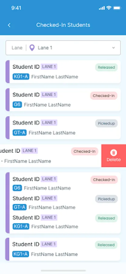 Teacher confirms the student's release from the classroom with a single tap.