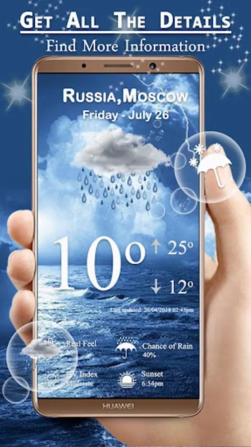 Weather app provides current detailed current weather forecasts and weather forecast observations from all over the world through weather radar. Wheather app also provides pressure weather humidity current atmospheric, weather online conditions, visibility distance, relative, different unit precipitation, dew point, wind speed and direction, and ten days ahead. On the basis of Daily and hourly weather forecasts. Weather radar app gives you accurate weather information no matter where you are. Free weather app with weather radar forecast is one of the best storm weather apps on the Google play store. Free Weather forecast app for android has accurate weather information for any time and everywhere. By Live weather information app, you can prepare your plan carefully; you will be successful at work and have a better life. Weather app is very helpful with everybody. Free Weather app detects weather in your current location automatically.