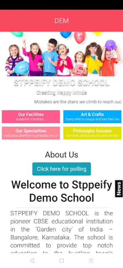 Schools -School Information site, School Newsletter, Thought of the day, Announcements/Messages for entire School by SMS, VoiceMessage, Mail, notification. Messages for one or more classes. Events and holiday calendars, share photo and video galleries, School demography, GPS tracking of vehicles.