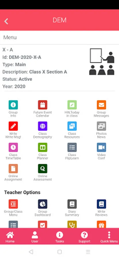 Class - Create any number of Classes (main, extra-curricular, Bus route), Class newsletters, Class resources, Class timetable, Class demography, Class Photo Gallery, Class event calendar