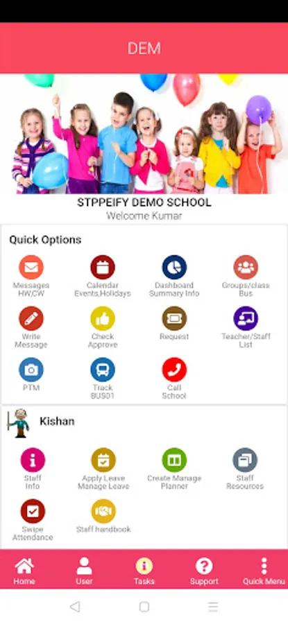 Parents - Receive messages for class where their wards are studying, view Student feedback/reviews/Marks/Achievements/Absence record, Set own reminders, view upcoming events of class and school, Message to Teacher, View GPS tracking of school bus, update student contact details and photos.