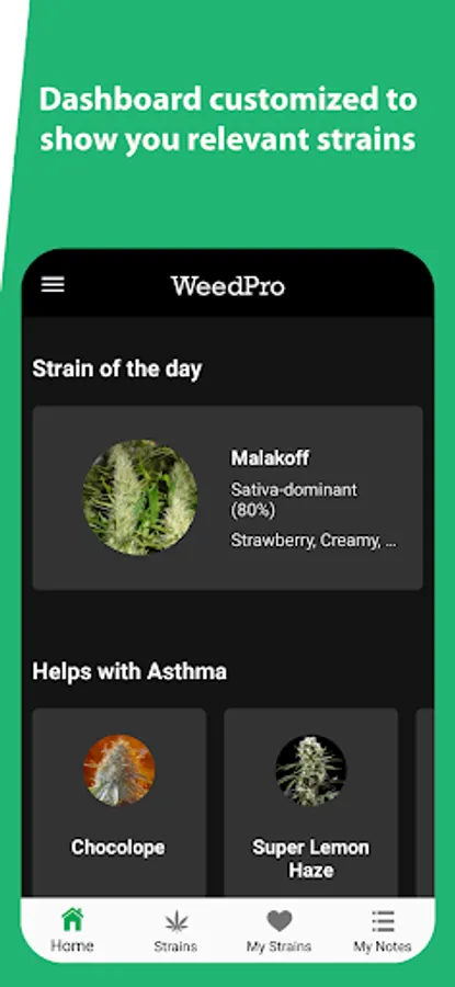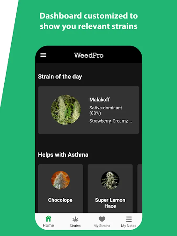 WeedPro is your go-to app for cannabis strain information. You can search through thousands of strains and save personalized notes and favorite strains all in one place for easy reference later. The app includes full strain descriptions, history, and reviews from cannabis experts and real users.