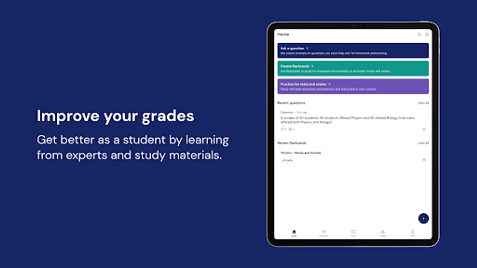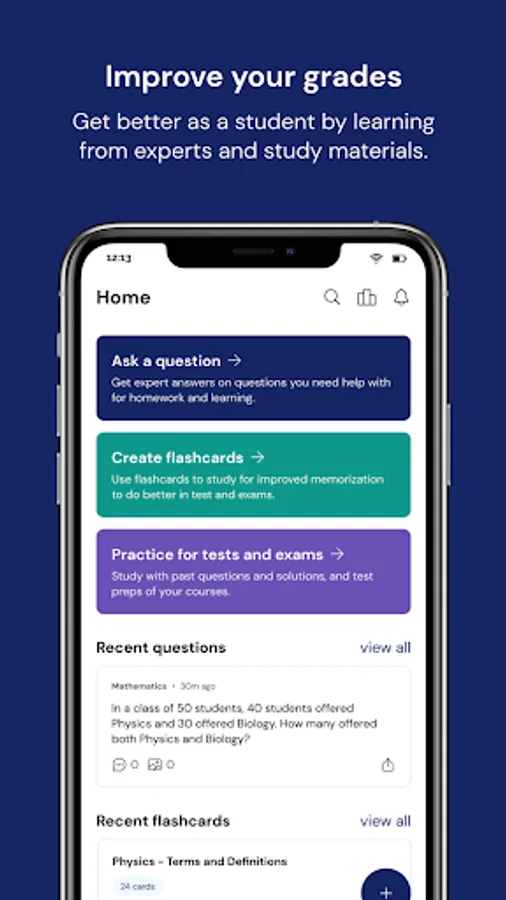The explore section is a personalized study feed consisting of test preps, flashcards, past questions, study sets by other students all tailored to your subject's interests and school level.