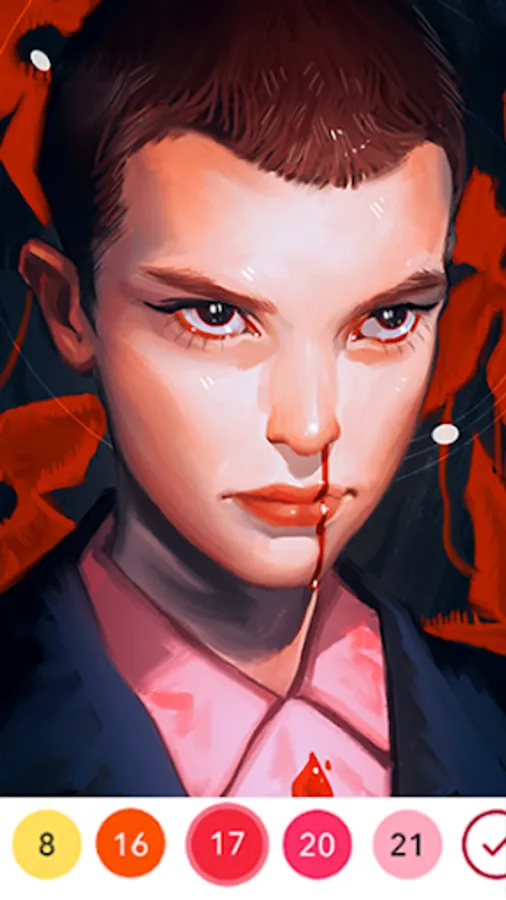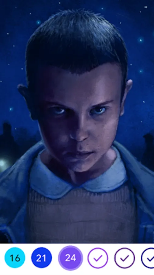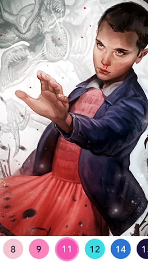 In Stranger things Color By Number app we have great images of Eleven and other characters like Steve Harrington, Nancy Wheeler, Mike Wheeler, Jim Hopper, Jonathan Byers...
