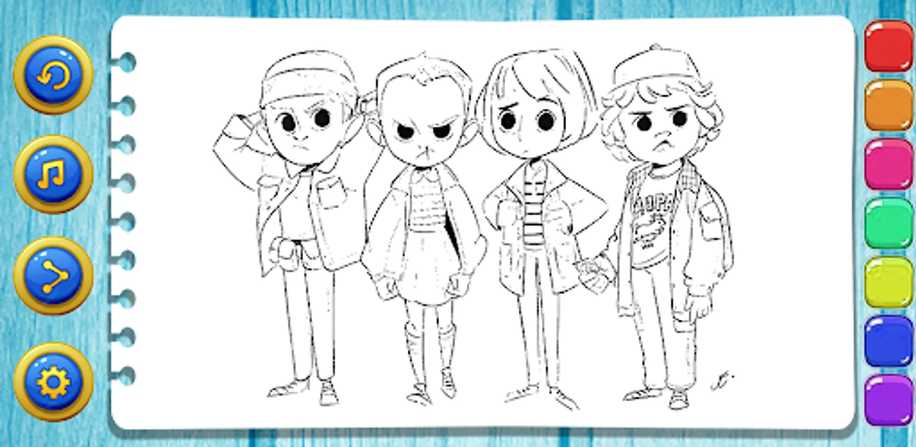 You can also use this anime coloring book Stranger Things application for entertainment to fill your spare time. There are lots of characters that you can color like Eleven, Billy, Steve, Mike, Byers, Demogorgon, etc.