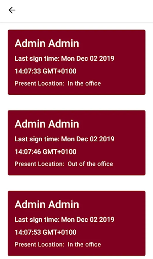 An attendance application for Stransact employees. It makes use of the scanner to take the time of arrival and exit from the office premises.