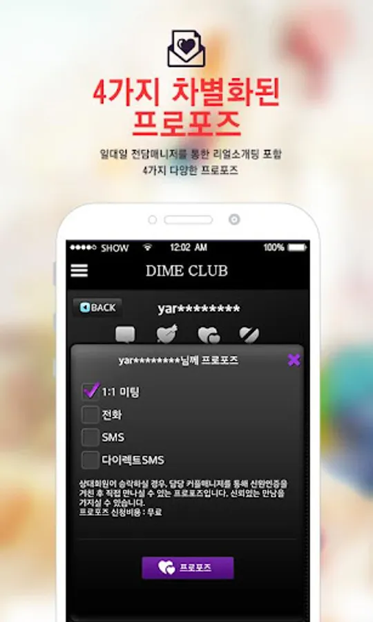 Step4. When the opponent is OK, 1: 1 meeting, contact exchange, SMS, and chat are available depending on the proposal type.