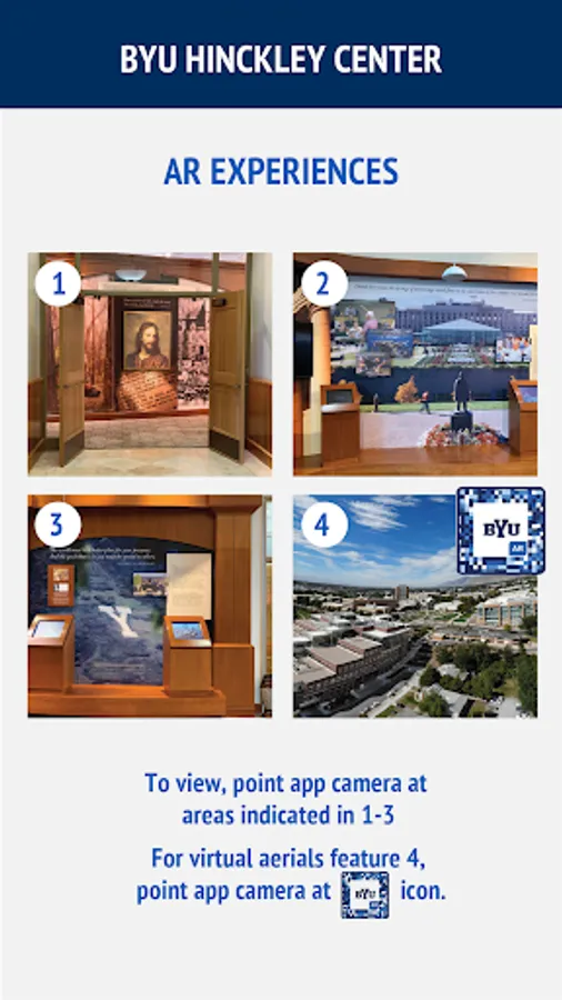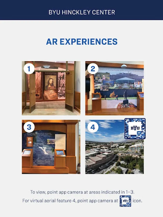 Through the world of Augmented Reality you can see BYU campus as you've never seen it before. Find hidden experiences and learn more with this new interactive experience. Simply use your compatible mobile device and find the triggers throughout campus that will activate unique content that can only be found through this app.