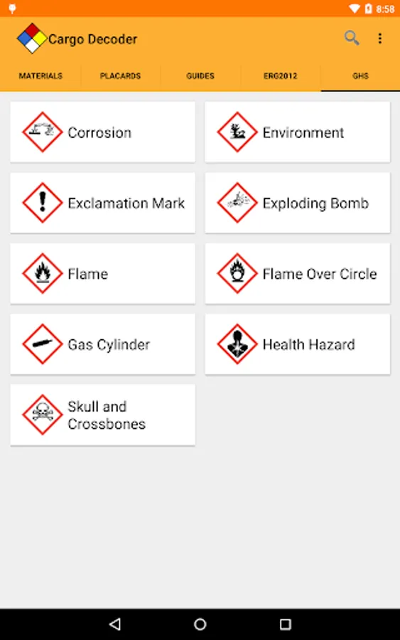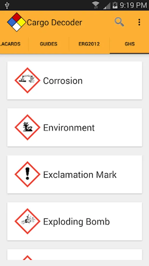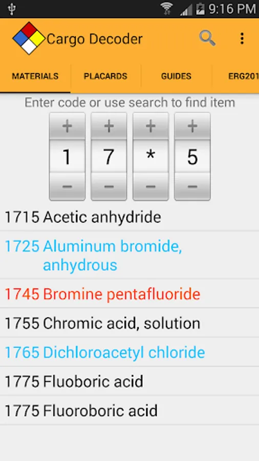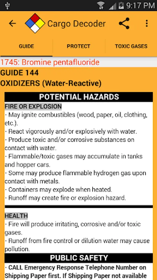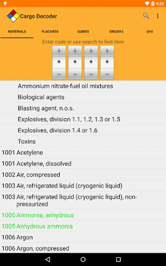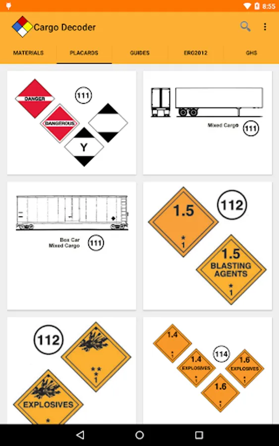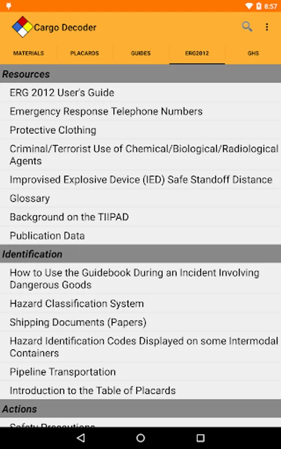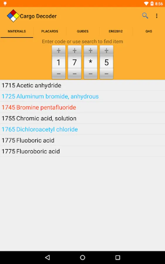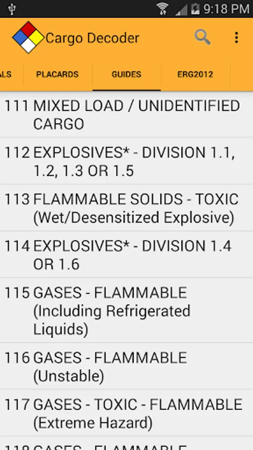 Powerful search capabilities will help you quickly find information by matching just part of the UN/NA number or material name. Cargo Decoder also supports Voice Search to make searches even faster.