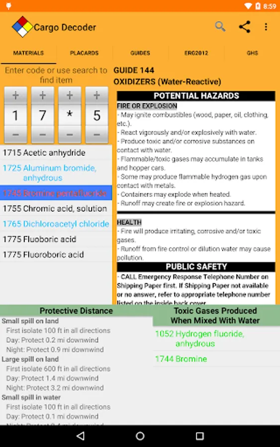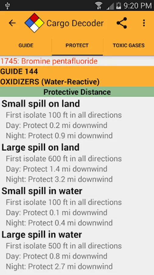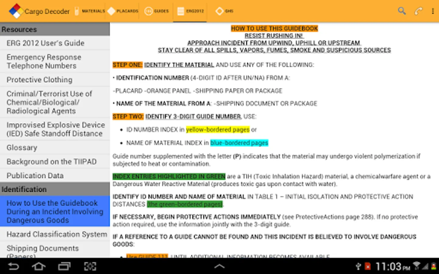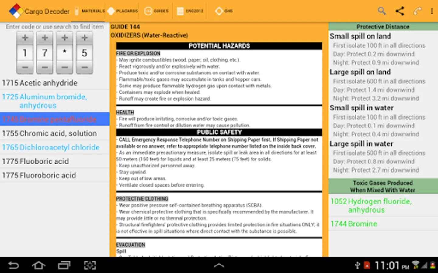 Protective distance information, toxic inhalation hazards, and ERG2016 reference pages are just a touch away for emergency responders and HazMat personnel. A simple swipe quickly moves you to the information you need.