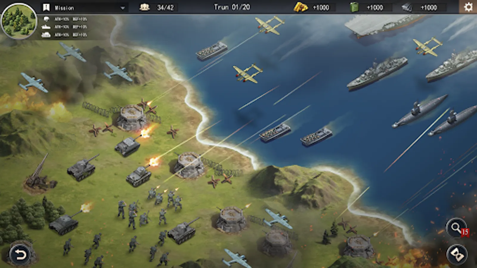 The war is coming. Show your unique art of war from the tip of your finger to bring out an impeccable world war. You can command any single army and match your own army groups at your will. You can also lead your allies to join the beach of Normandy or command the Axis forces to defend Atlantic Wall. Pick the nation you desire to join the second world war and decide the fate of the campaign in this World War II strategy game.