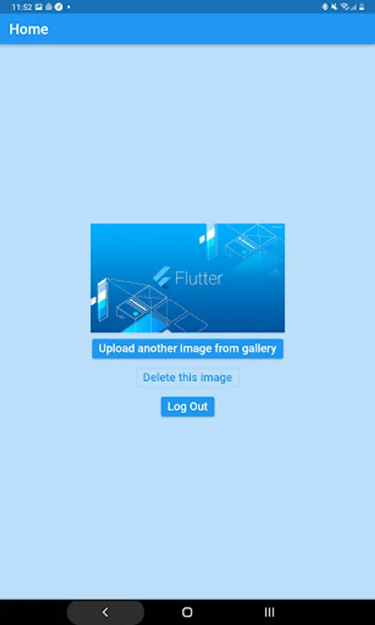 A user can log in, pick an image from the device's gallery or computer's drive and save it to a Firebase Storage.