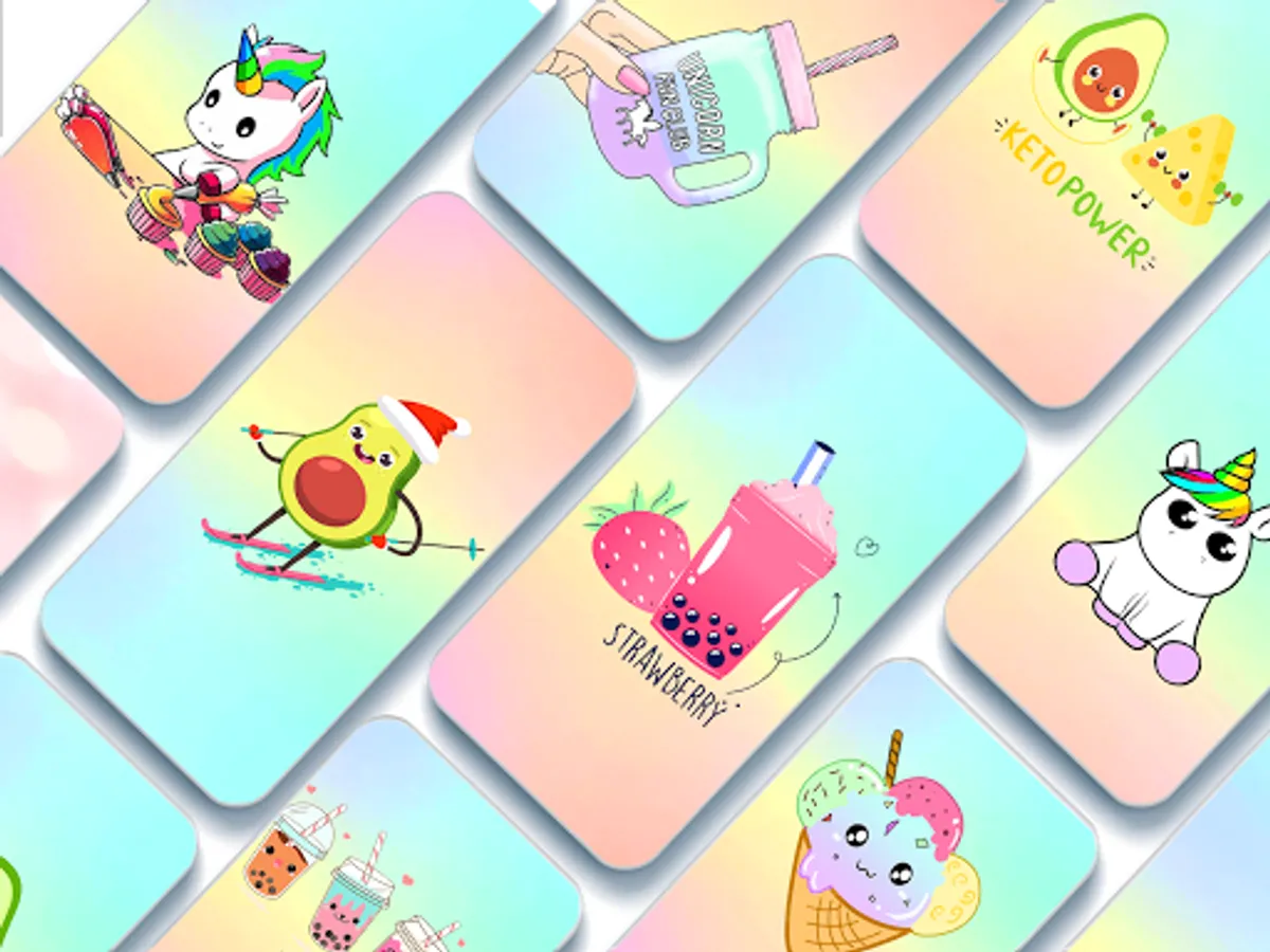 Cuteness wallpapers app with superb pictures! such as Kawai avocado Cute panda And unigirl images , Girly backgrounds This Creative wallpapers have a new pictures like pop corn , Magical Unicorn in addition to Vector graphic such as food Cakes Cartoon watermelon flowers , patterns cats.....
