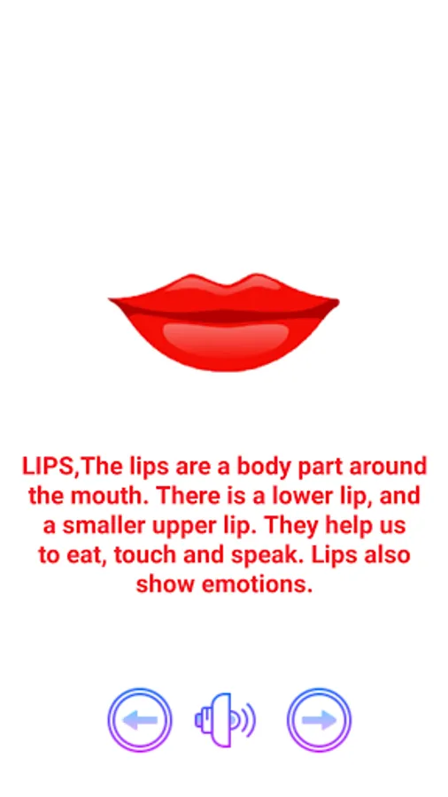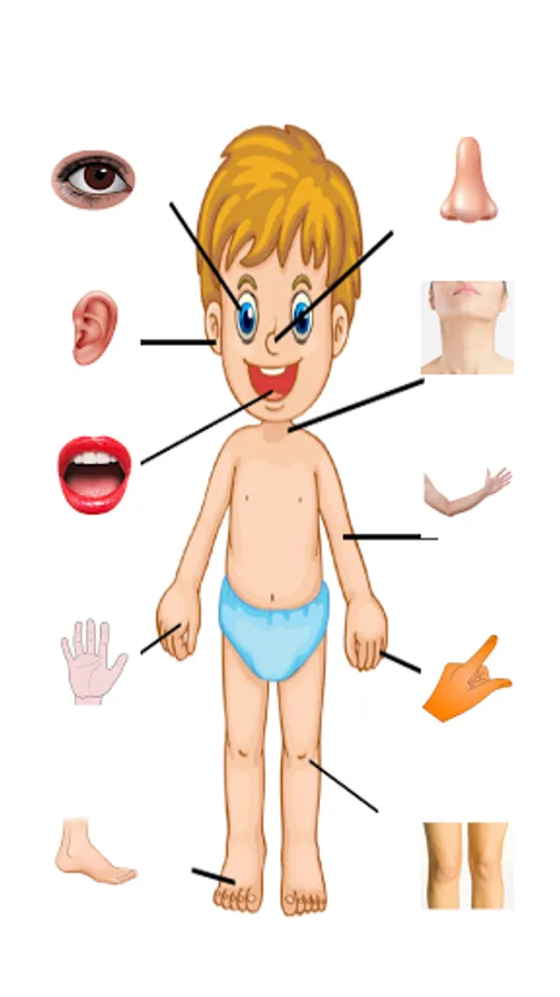 Human Body Parts - Kids Learning game is designed and developed for kids to learn about body parts with fun and interactive way. Body parts with pictures and information about each parts is a complete learning book for kids.