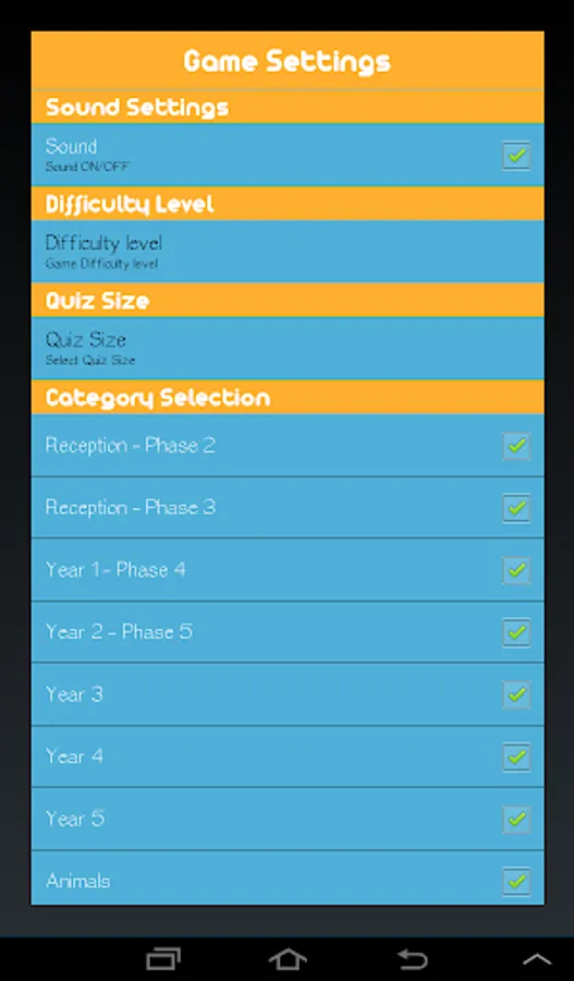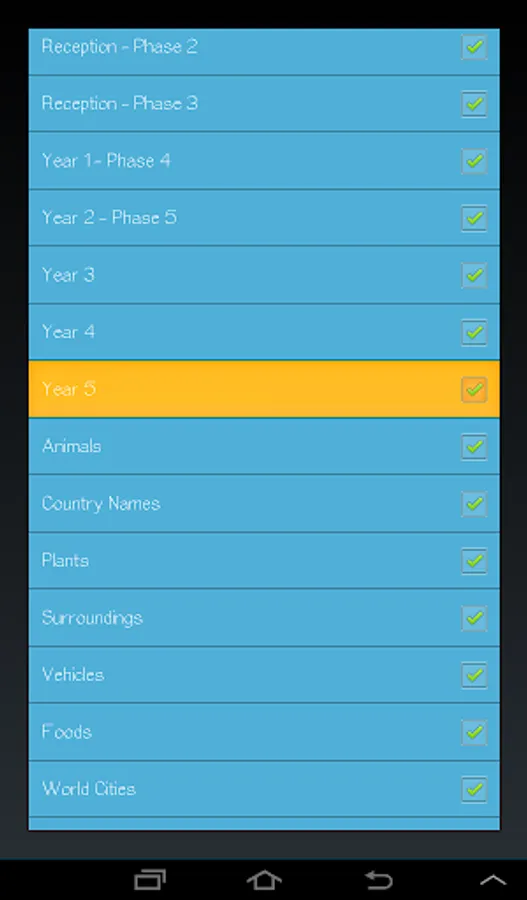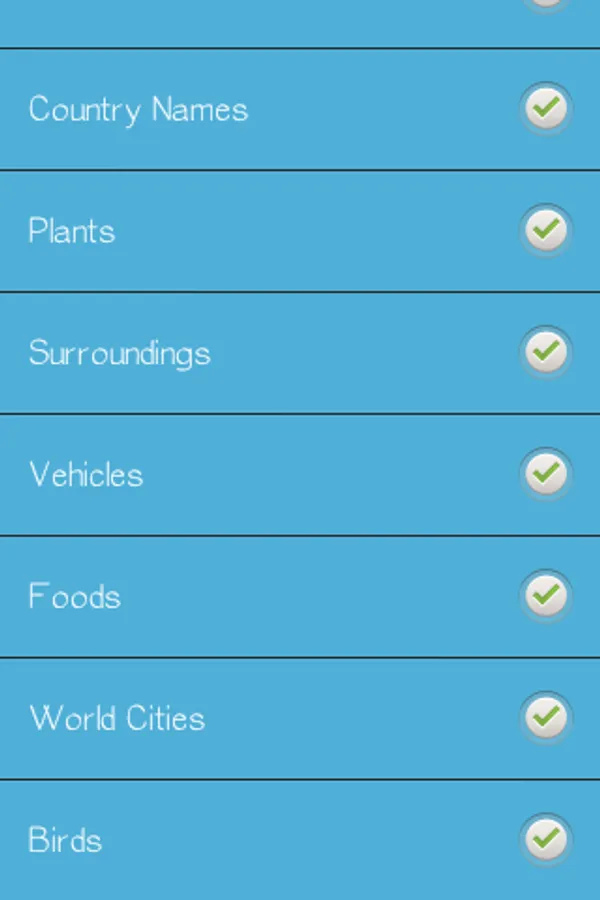 The categories can be disabled/enabled so that the app will show spelling tests related to your kids age. The application also have 2 difficulty levels so the tests will be equally challenging for a child of age 4 and age 10.