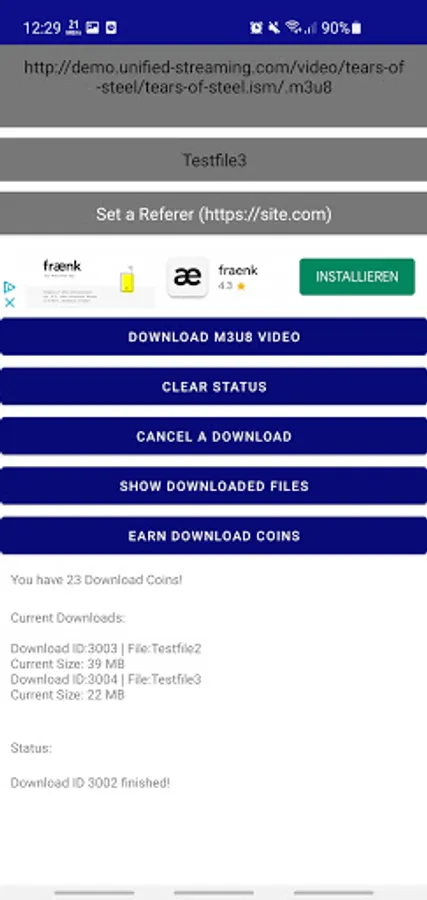 • Download any .m3u8 stream with this app