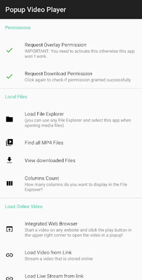 You can even start videos from the youtube app or the gallery app, simply share the video to our popup player and it will start playing it!