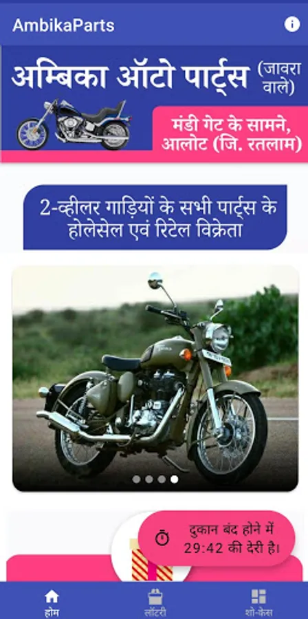 Our showroom, Ambika Auto Parts is opposite Mandi Gate, Alote, Dist- Ratlam (MP). All 2-wheeler parts are available in our showroom.