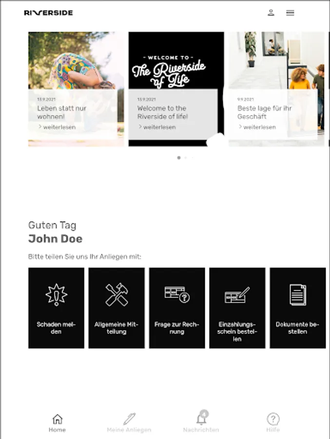 As soon as the Riverside app is available for your apartment, you will receive an email with your access code. After registration, you can securely log in with your e-mail address at any time and from anywhere.