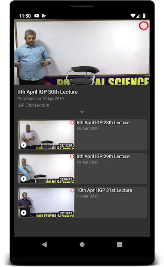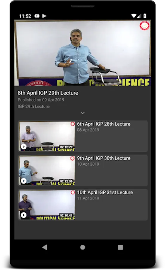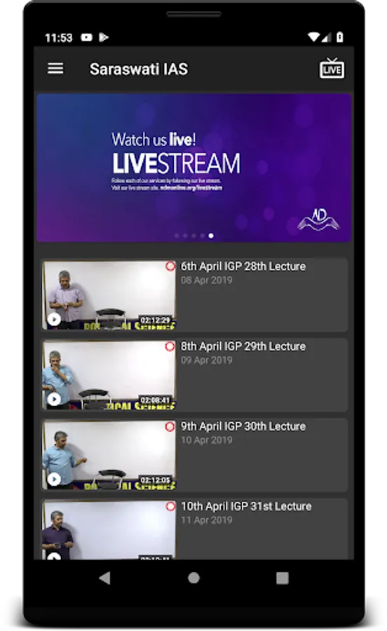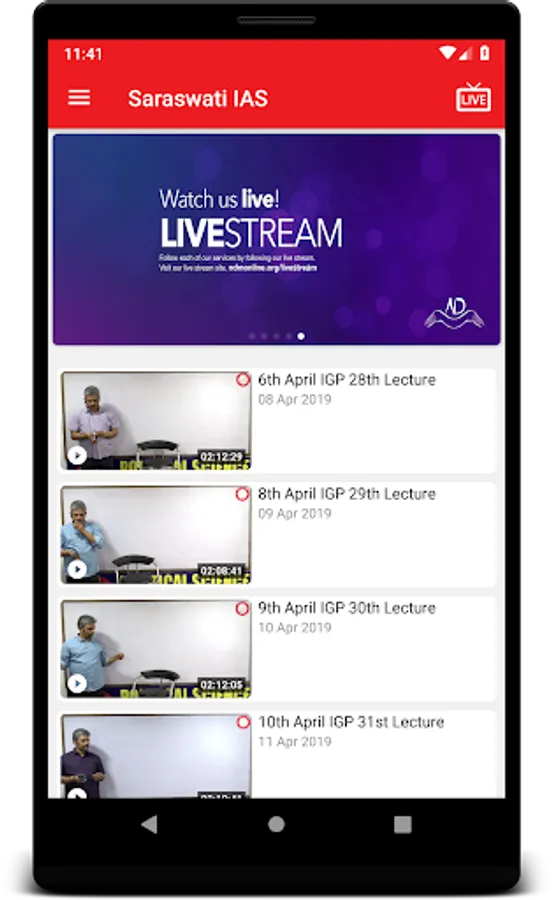 Saraswati IAS app shows our daily live lectures from 9-11am and same