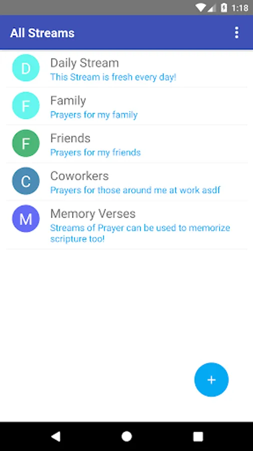 The purpose of this app is to provide you with an easy place to organize your prayers and can provide reminders throughout the day to pray for the things you might otherwise have forgotten to. It works like this:
