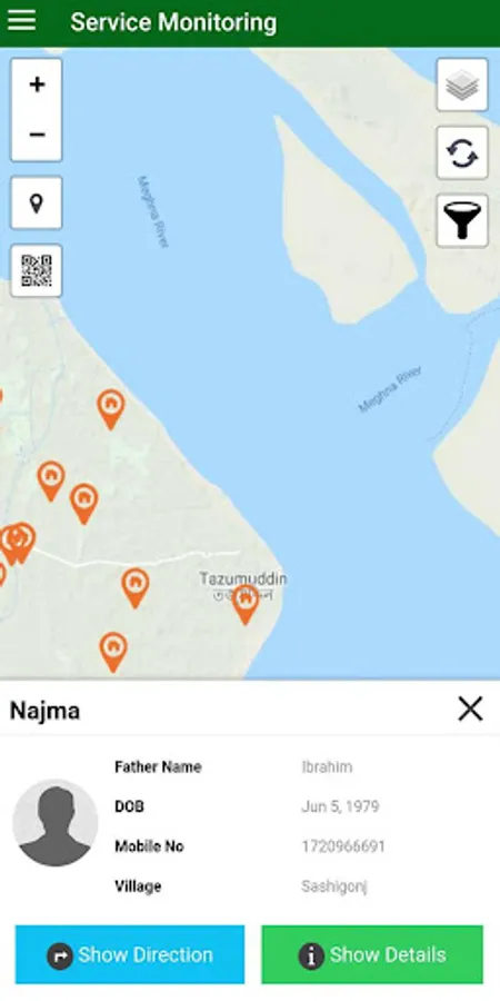 Locate the project activities through GPS with the basic information of Members, POs, Villages, Unions, Upazilas, Districts, etc.