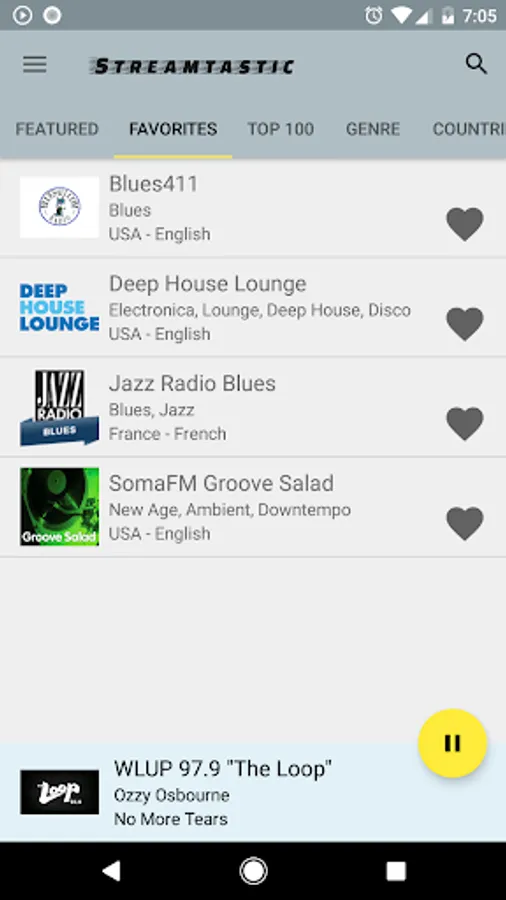 - Favorites – Save your favorite stations, so you can listen now & later.