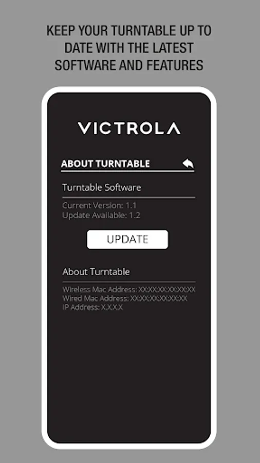 • Use the Victrola Stream app to keep your Victrola Stream updated with the latest software and features