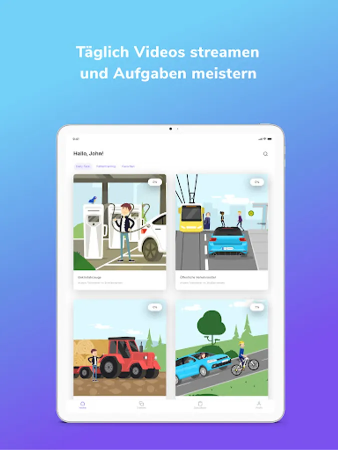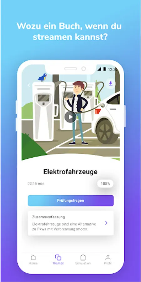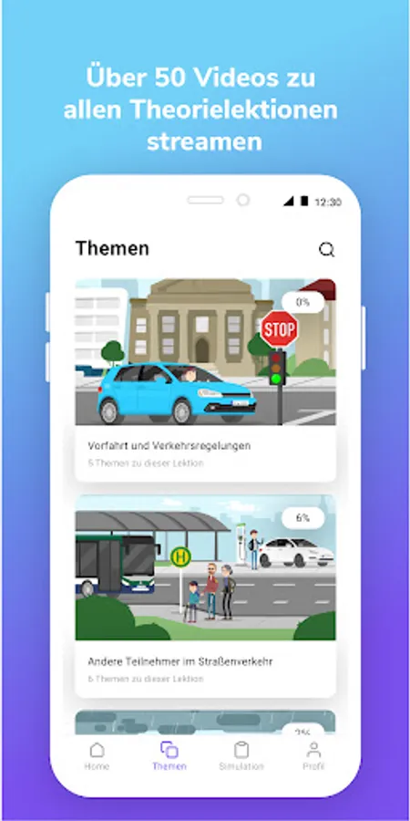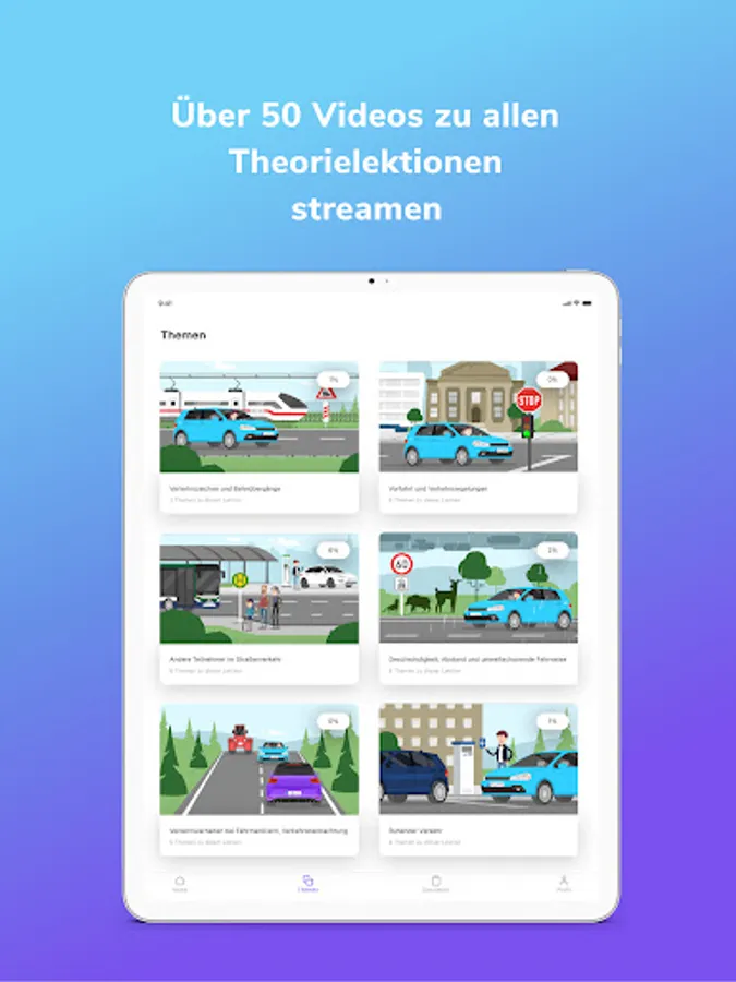 With your app you can now stream short videos on more than 50 topics of the theory lessons. Together, the new videos replace the traditional textbook.