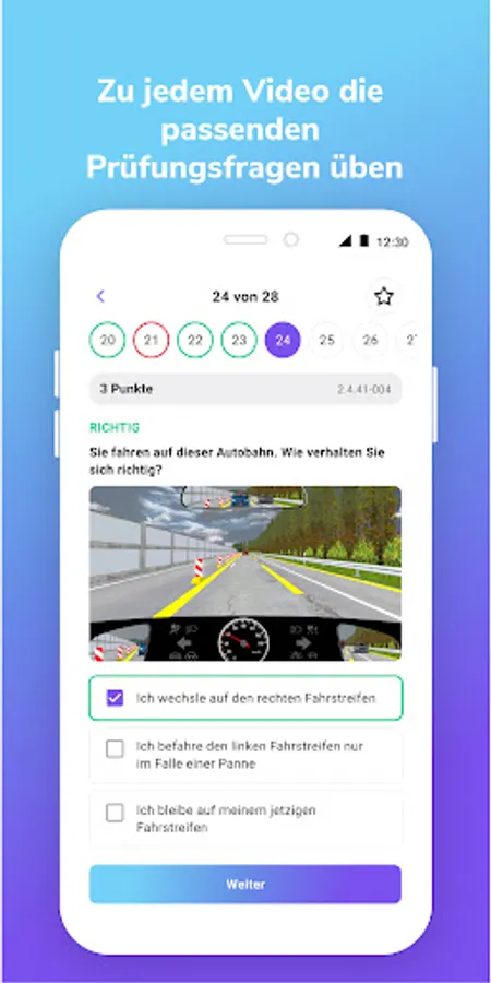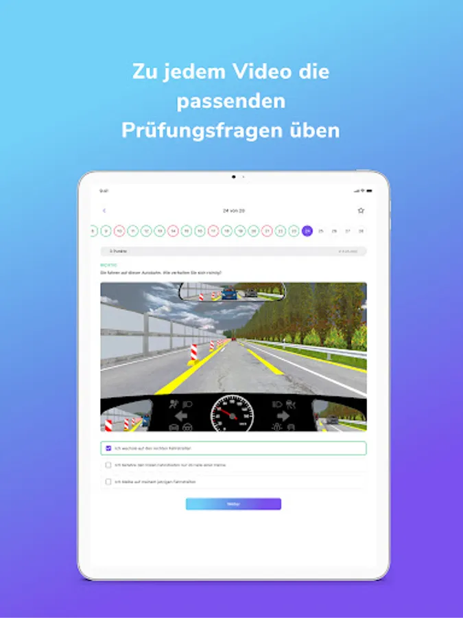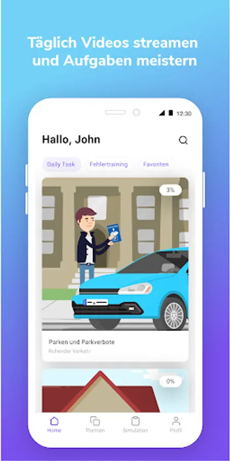 Your new driver's license app is now tailored to your everyday life. Simply set your own learning pace and get fit for the theory test in the desired period.