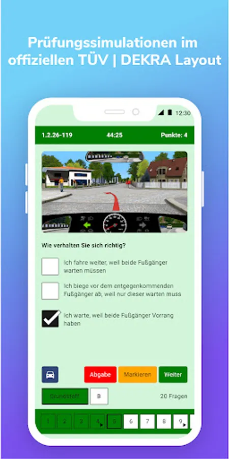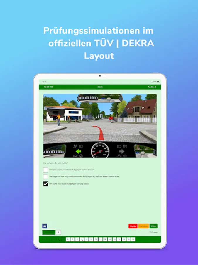 In order to be optimally prepared for the theory test, you can carry out an unlimited number of test simulations in the official TÜV | DEKRA Layout.