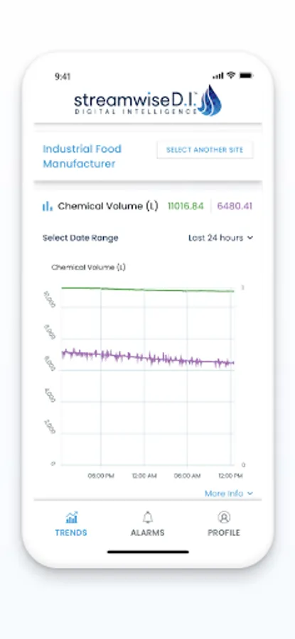 Streamwise D.I.™️ connects to sensors and digitizes real-time data collected at your plant. Automatic data cleaning is used to identify and remove any “dirty” data from sensors and databases. Reliable data is available in real-time 24/7/365 through the Streamwise D.I.™️ app.