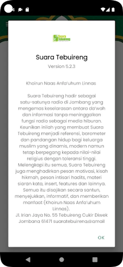 To complement it all, Suara Tebuireng also presents motivational messages, stories of wisdom, the essence of hadith messages, broadcast material, inserts, features and others. All of this is presented in a polite, cool, informative and beneficial manner (Khoirun Naas Anfa'uhum Linnas).