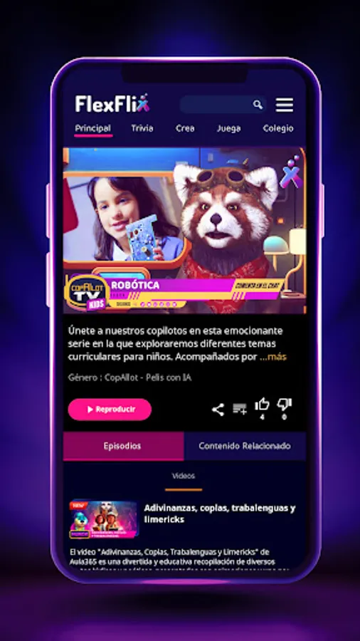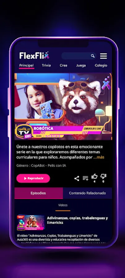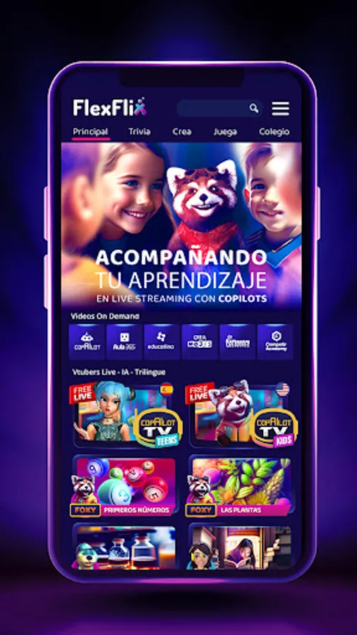 The streaming platform that redefines entertainment and the way we learn. We offer a unique interactive entertainment experience through live and on-demand videos that challenge the limits of imagination. Through our innovative Artificial Intelligence Copilots, each piece of content becomes an opportunity to explore, discover, and grow. FlexFlix is not just streaming, it's a passport to the future where fun, creativity, and knowledge merge.