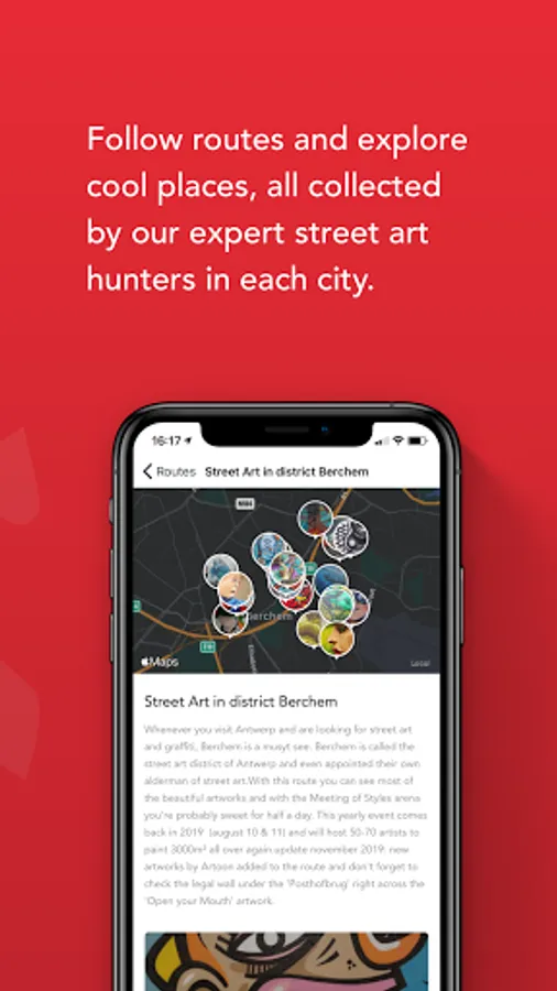 With this app, it is easy to explore street art all through the world. Simply use the map to see what's around you, or look at our routes to get your bicycling or walking on and discover the beautiful artworks in your city.