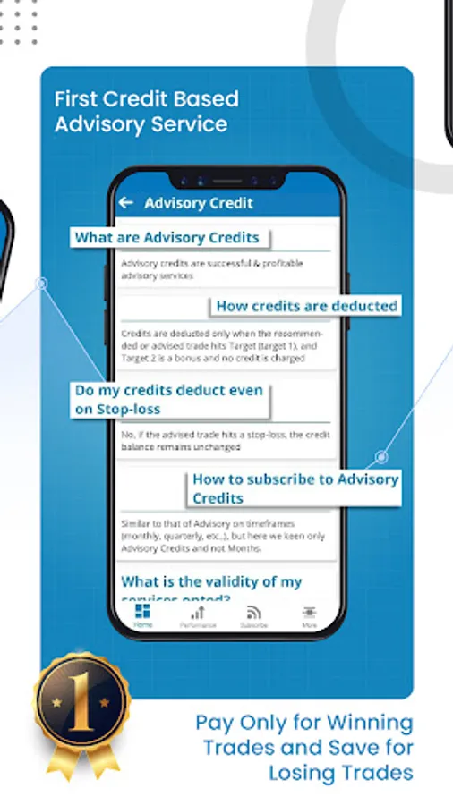 Credits are the number of profitable trades; to be specific, It is the balance of successful stock & commodities research. Whenever a successful call ( particularly the profitable stock or commodity tips) is sent to the trader, there will be a deduction of ONE Credit from the main balance, whereas no deduction of credit will be done if there is no profit.