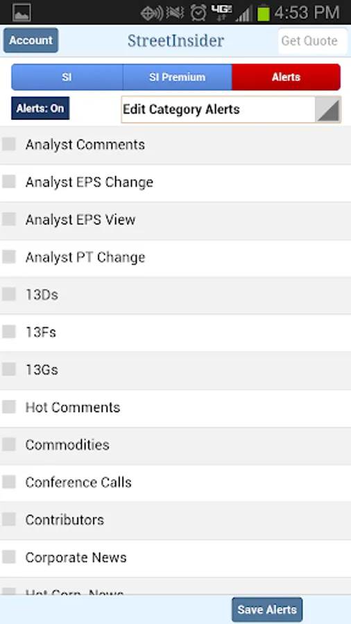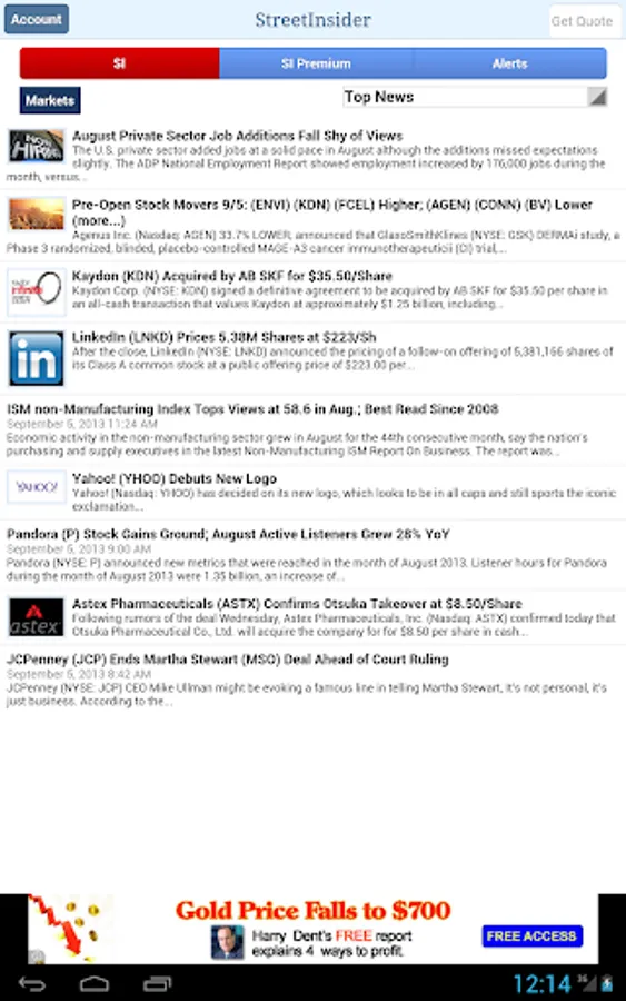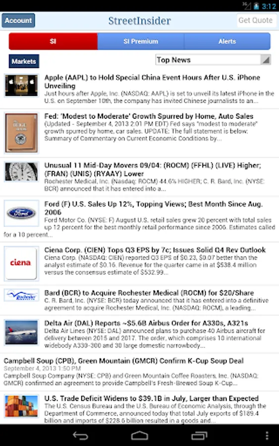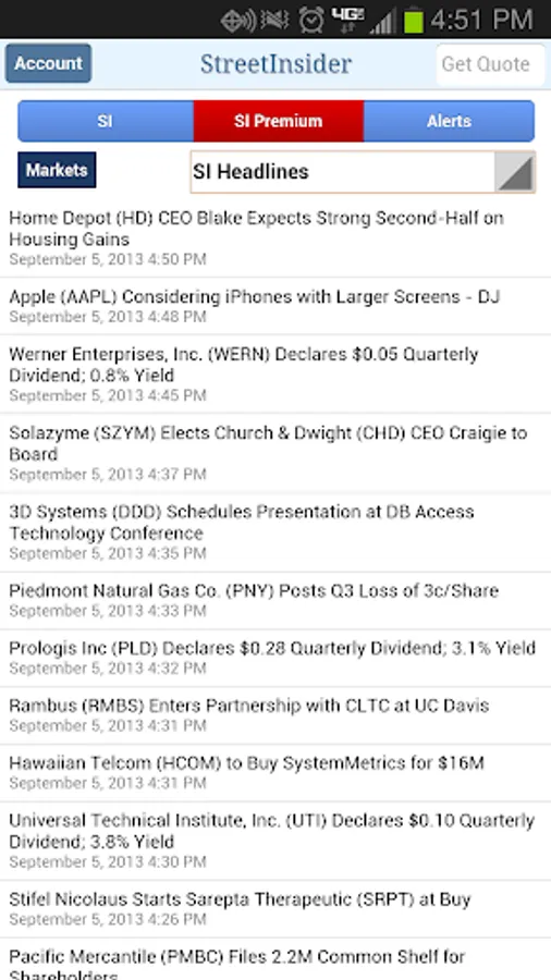 StreetInsider.com's free app puts breaking, actionable stock market news at your fingertips. Get instant access to Wall Street's top analysts and thinkers. Set up custom alerts to track news on your stocks (i.e. GOOG) and other key market areas (i.e. Mergers). Take the experience to the next level with SI Premium.