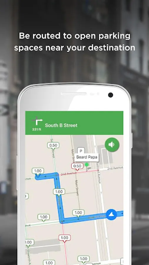 * Turn-by-turn route navigation automatically directs you to an open parking space near your destination (where data is available).