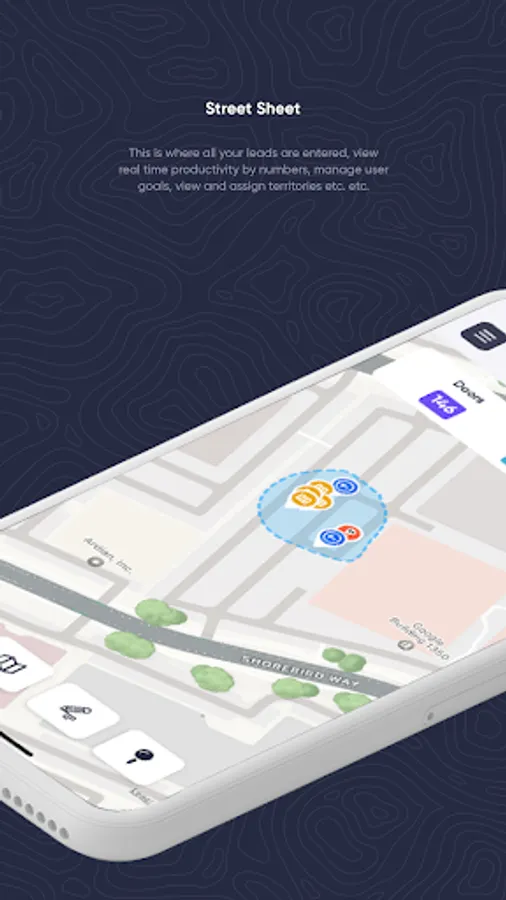 Street Sheetz” App is designed for Door-to-Door Sales Reps, Canvassers, and all Field Representatives. Primarily designed to track personal production, lead management, sales productivity, and user KPI’s (Key Performance Indicators) while in the field. From the moment you “Start Day” to the moment you “End Day”, all entries are time-stamped, catalogued, reminders are set and metrics are taken.