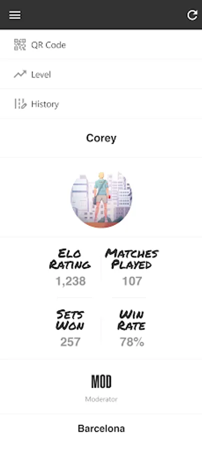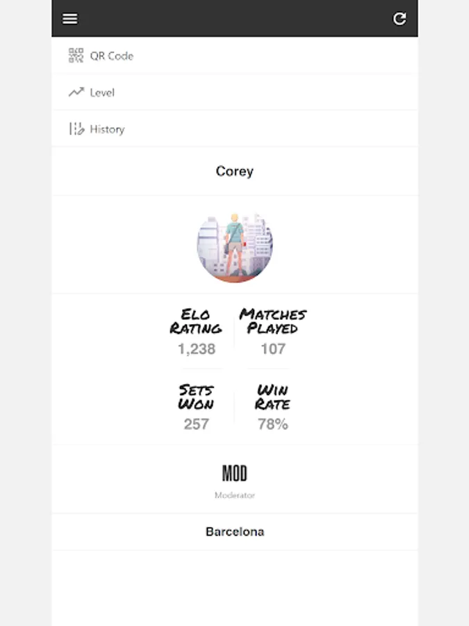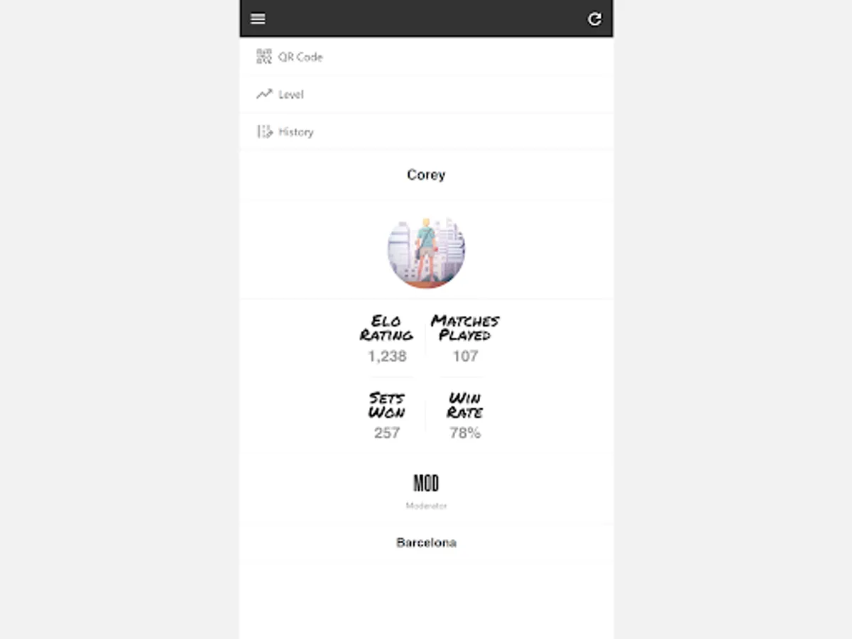 Anyone, of any ability, can become a StreetTT player and any two players can begin playing on any table. Players scan each other’s QR code to print their match result to a table, giving each player an Elo rating and a ranking by table, city, country, world. As players submit more match results against new opponents they are awarded higher levels in the game.