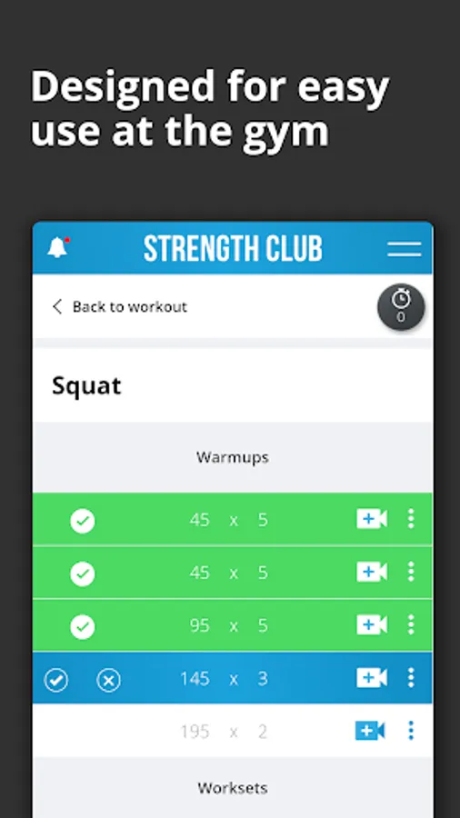 * Review your videos anytime, anywhere. Attach videos to every set (including warmups!). In-depth review tools like slow motion and step through frame by frame.