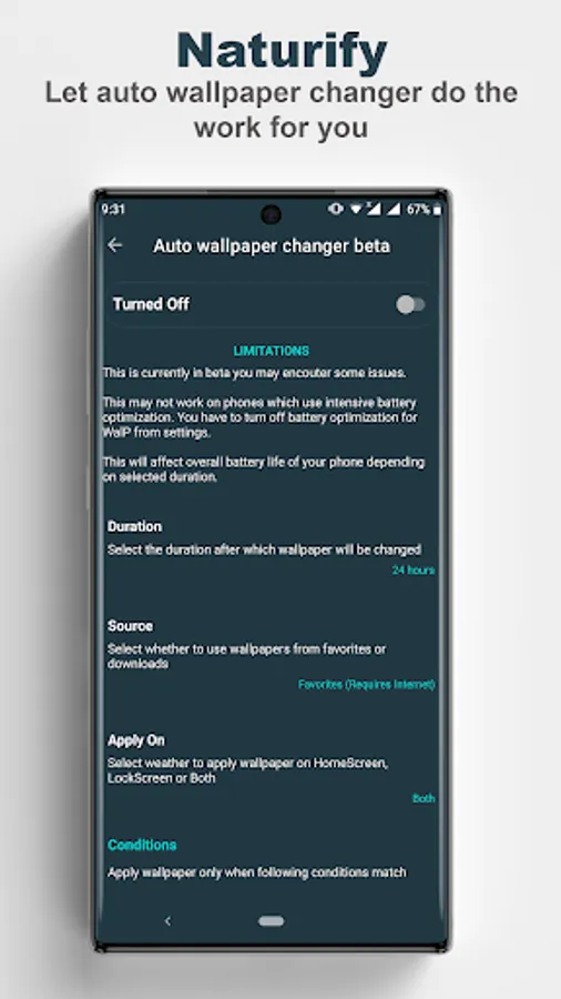 Naturify - 4K Nature Wallpapers App is a free app that provides you nature wallpapers in 4k quality. Naturify also provides you option to use filters to enhance those wallpapers. Feel fresh everyday with nature wallpapers and Naturify will enhance that feeling with it's amazing looking User Interface. Naturify also categories nature wallpapers in sub categories.