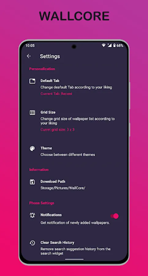 New wallpapers are added everyday and users will be notified when new wallpapers are added. New categories will be added as we cover available categories first. Keep supporting us so we keep making WallCore - 4K & HD Wallpapers better.