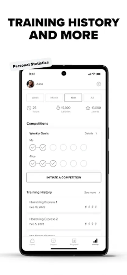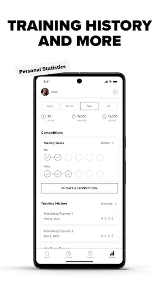 Training together is more fun and helps to stay committed. You’ll see each other’s stats and will be notified every time your friend completes a class. The winner is announced weekly (and if you both reach your goal, you both win!)