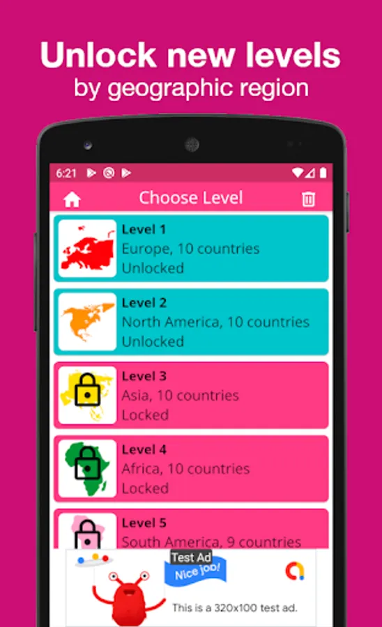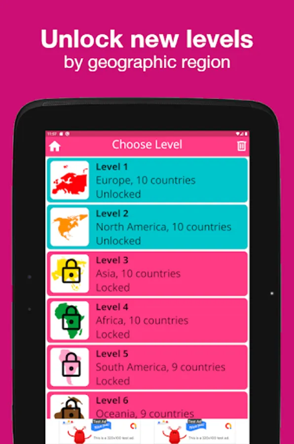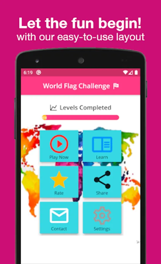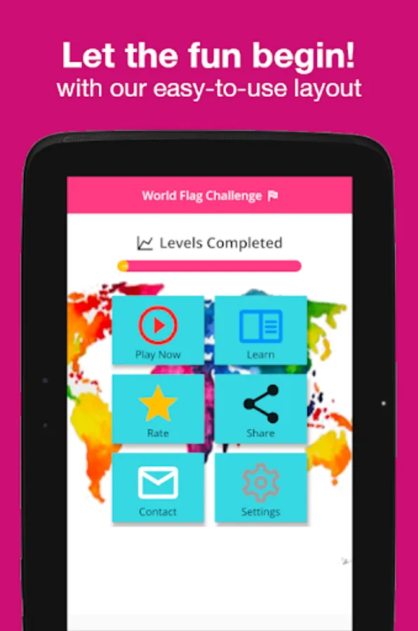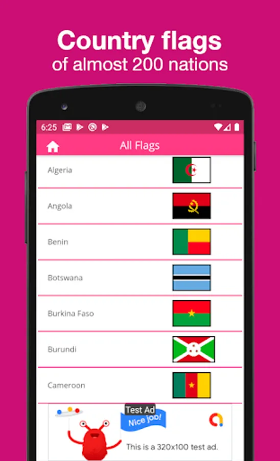 How well do you know the flags of the world?! This game presents a world flag quiz where you can test your skills in identifying the country flags of a list of countries. Euro flags, Asian flags, flags from the Americas, you name it -- our free app features almost 200 countries in all! With our user-friendly multiple-choice format, this flags game offers an easy way to learn about the different nations of the world and their associated country flags. So, download this flag trivia app today and guess the flag now!