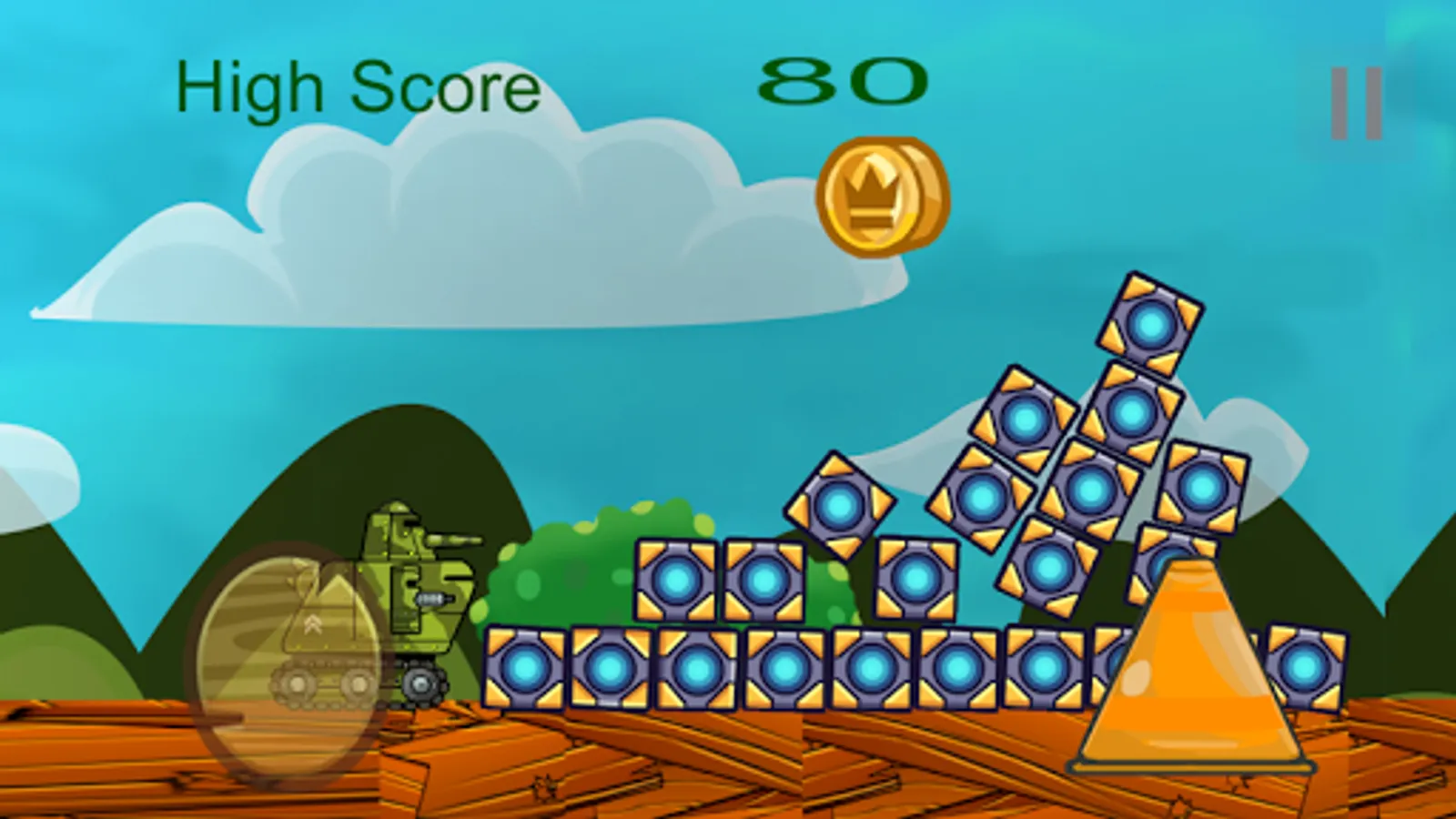 How to play: Your tank will roll forward on its own and you can control it by jumping or shooting. Press the circle to jump and triangle to shoot. Push the blocky squares & collect coins. You will die if you get tank trouble. Tank trouble can happen when: