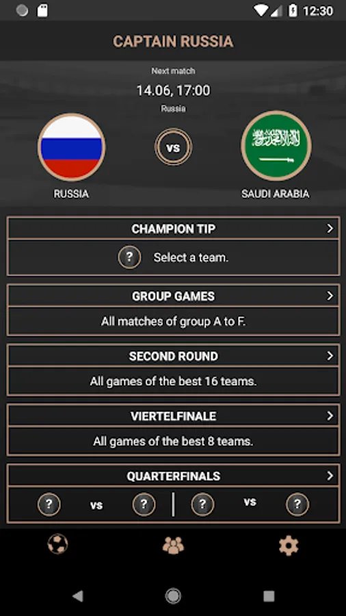 Here is your Betting Game App for 2018 in Russia. The soccer app with passion. The soccer app without registration from friends for friends.
