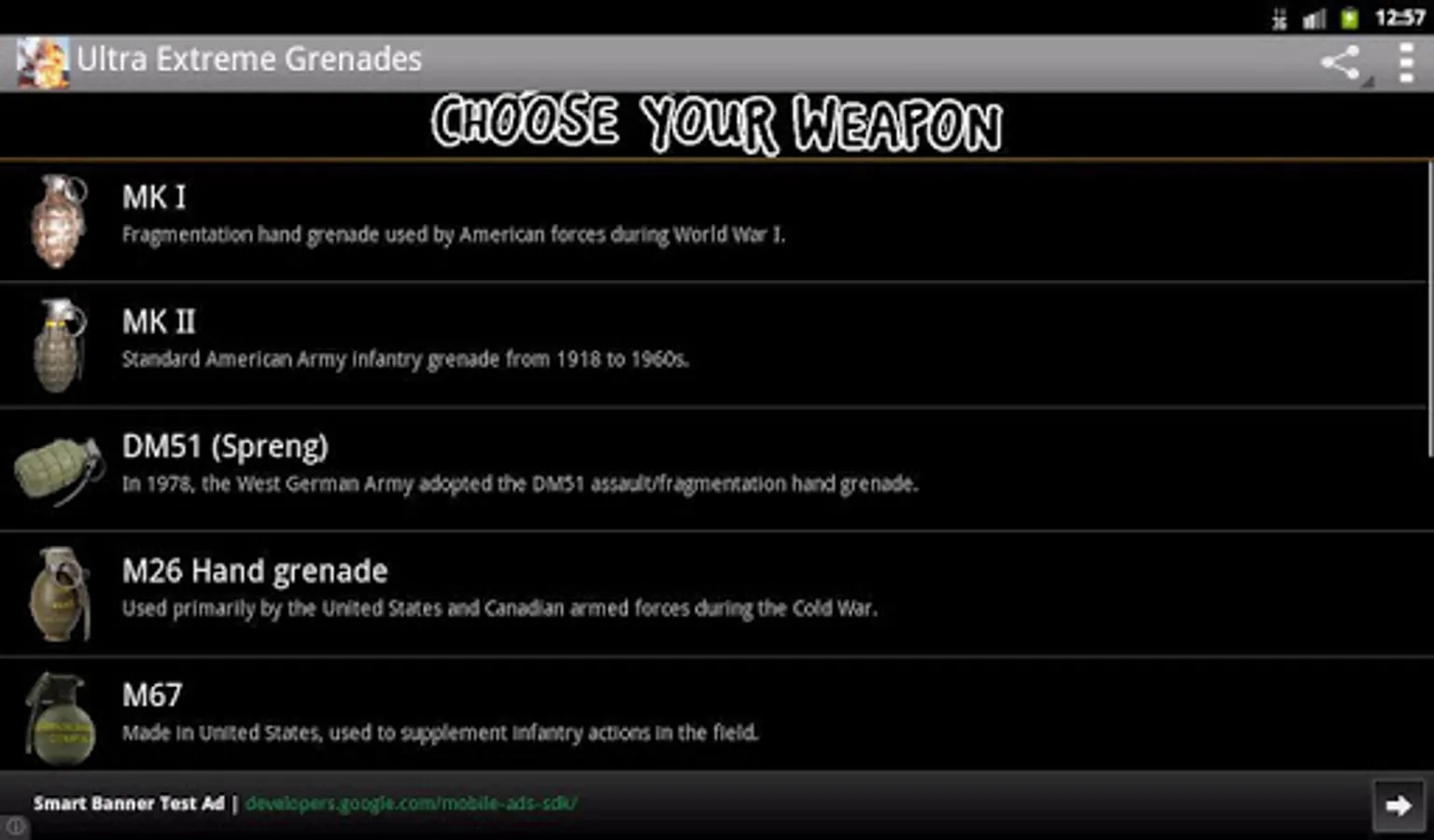 10 Ultra Extreme Grenades with Animations, Real Explosions, Special Sound Effects and Vibration!